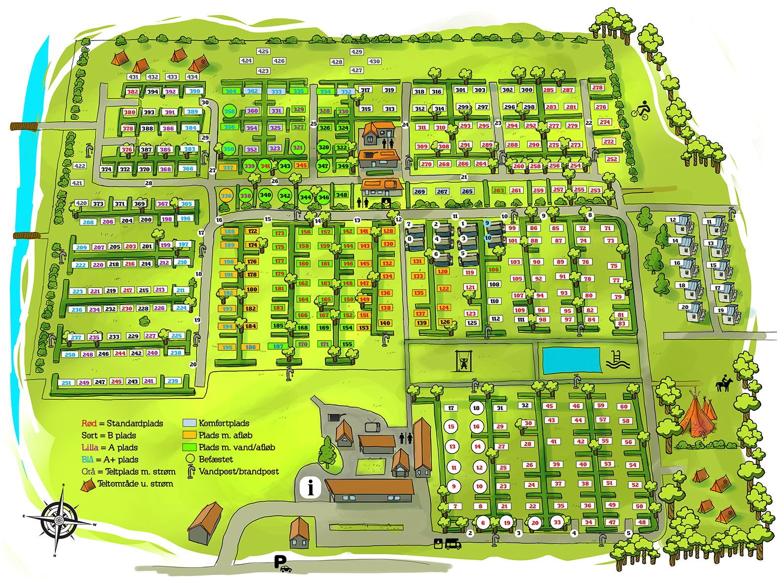 The price for our sites include environmental taxes, free access to pool area, electricity and hot water for kitchen and shower.