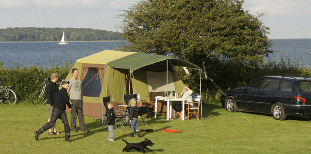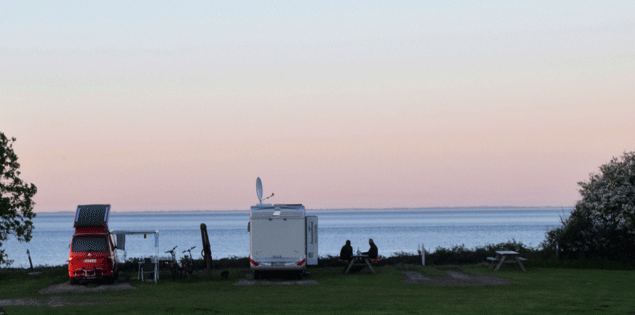 Tent pitch: At Camp Hverringe you can stay in a tent and let the sea lull you to sleep. Our tent pitches are situated close to the beach or at the back of the campsite with a gorgeous view to the setting sun. You may set up your tent where you please, and park your vehicle on the side, as long as the fire separation distance, 3 meters between each unit, is observed.