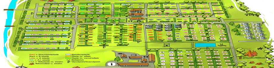 At Camp Hverringe we have six different categories of pitches; tent pitches, tent pitches with electricity, standard pitches, B, A and A+ pitches. Below is a description of each category. Map of Camp Hverringe